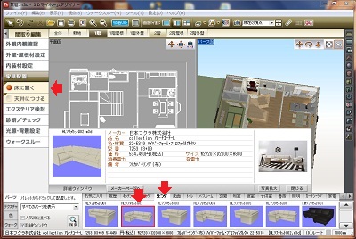 ■家具の配置も簡単 家具やカーテンなどのインテリアもドラッグ&ドロップで配置! 回転やサイズ変更も自由! |